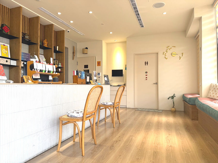 環境介紹: 大面積落地窗引入自然光,結合室內綠意植栽與溫潤的日式元素,營造明亮、放鬆且療癒的診所空間,讓等候不再是壓力,而是一段能安心休息的時光。 在舒適安心的診療環境中,搭配專業設備與細心照護,陪伴每一位患者安心就診。